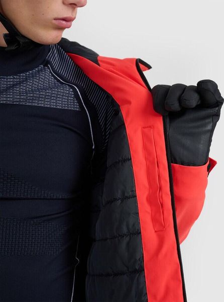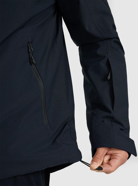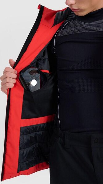 Die Jacke verfügt über eine integrierte Kapuze mit 3D-Verstellung, die sich individuell anpassen lässt, sowie mehrere praktische Taschen, darunter Außentaschen mit Reißverschluss, eine spezielle Skitasche mit Reißverschluss, eine Pass-Tasche und eine interne Brillentasche. Eine zusätzliche Innentasche mit Klettverschluss bietet weiteren Stauraum für persönliche Gegenstände. Die verstellbaren äußeren Manschetten mit Klettverschluss und der elastische Kordelzug mit Stopper am Saum sorgen für eine perfekte Passform und zusätzlichen Schutz vor Wind und Kälte.