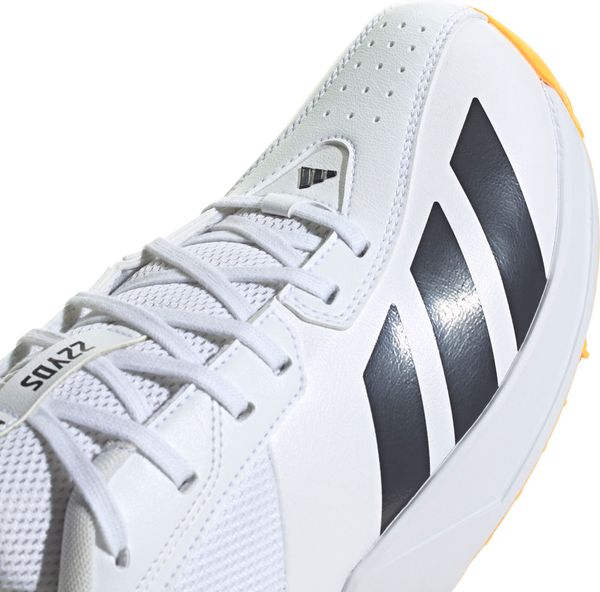 Der 22YDS Spike von adidas ist der ultimative Cricket-Schuh für Spielerinnen und Spieler, die Agilität und Komfort auf dem Spielfeld schätzen. Mit seiner regulären Passform und den Schnürsenkeln bietet er eine optimale Anpassung an den Fuß, während das Obermaterial aus Textil und Synthetik sowie das Textilfutter für Atmungsaktivität und angenehmen Tragekomfort sorgen. Die robuste Gummiaußensohle ist mit neun austauschbaren Stahlspikes ausgestattet, die für hervorragenden Grip und Stabilität auf Rasenflächen sorgen.