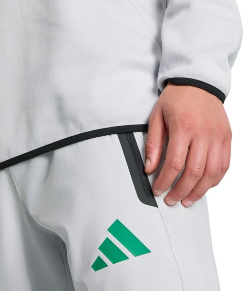Mit dem durchgehenden Reißverschluss und dem Rundhalsausschnitt bleibt diese Jacke praktisch und stylisch zugleich. Die Spacer-Konstruktion und die reguläre Schnittlänge tragen zu einem angenehmen Tragegefühl bei, während die subtilen adidas Branding-Elemente die Performance-Ästhetik unterstreichen. Ob auf dem Weg zum Spiel oder beim Treffen mit Freunden, diese Jacke ist eine vielseitige Ergänzung für jede Garderobe. Lassen Sie sich von der Verbindung aus Fußballkultur und moderner Streetwear begeistern.