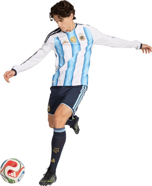 Die langen Ärmel bieten zusätzliche Abdeckung und Schutz bei verschiedenen Wetterbedingungen, während die charakteristischen 3-Streifen und der Seasonal-Kragen dem Jersey einen unverwechselbaren Look verleihen. Dieses Trikot ist mehr als nur Sportbekleidung – es ist ein Lifestyle-Statement, das die Liebe zum Fußball und zur argentinischen Kultur widerspiegelt.
