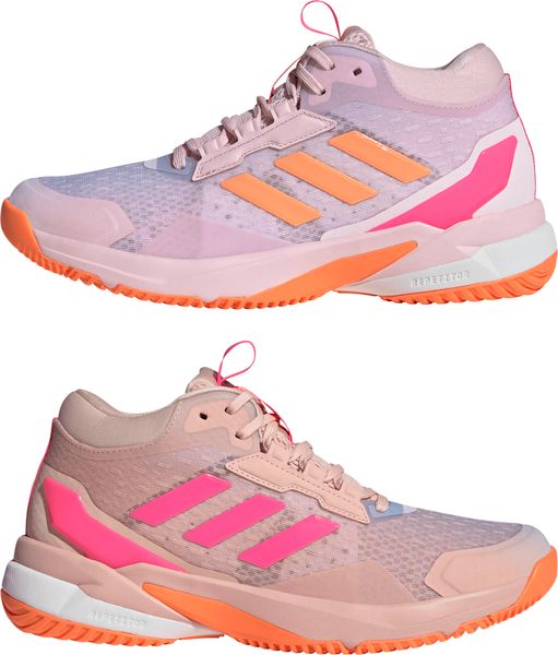 Die Crazyflight 6 Indoor-Schuhe von adidas sind die perfekte Wahl für alle, die in Hallensportarten wie Handball die Nase vorn haben möchten. Diese Schuhe überzeugen durch ihr leichtes, atmungsaktives Obermaterial aus Textil und Synthetik, das mit einem weichen Textilfutter für zusätzlichen Komfort sorgt. Dank der innovativen BOOST Zwischensohle mit EVA-Rahmen erlebst du explosive Bewegungen und eine herausragende Stabilität bei schnellen seitlichen Richtungswechseln. Das halbhohe Design bietet zudem optimalen Halt im Knöchelbereich, während die TPU Fersenkappe zusätzliche Unterstützung und Schutz bietet. Die strapazierfähige Gummiaußensohle sorgt für hervorragenden Grip auf Hallenböden, sodass du dich voll und ganz auf dein Spiel konzentrieren kannst.