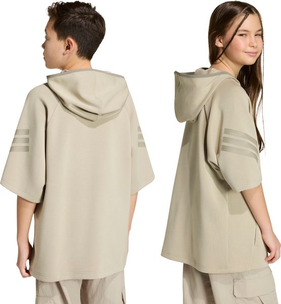 Der Future Icons 3 Stripes Short Sleeve Hoodie von adidas ist die perfekte Kombination aus Stil und Komfort. Dieser Hoodie ist nicht nur ein modisches Statement, sondern auch äußerst vielseitig einsetzbar – ideal für Freizeitaktivitäten sowie für Fitness und Training. Hergestellt aus einem hochwertigen Strickmaterial, das zu 48 % aus Modal, 44 % recyceltem Polyester und 8 % Elastan besteht, bietet er ein luxuriöses und angenehmes Tragegefühl auf der Haut. Die lockere Passform und der Rundhalsausschnitt sorgen für eine entspannte Silhouette, die Bewegungsfreiheit und Komfort gewährleistet.