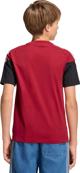 Das weiche Material sorgt den ganzen Tag für angenehmen Tragekomfort, während die reguläre Passform uneingeschränkte Bewegungsfreiheit ermöglicht. Das aufgestickte adidas Logo und das 3-Streifen-Band verleihen dem Shirt einen sportlichen Look, der bei aktiven Spielen oder für einen lässigen Alltagslook überzeugt. Ob in der Schule, beim Sport oder in der Freizeit, dieses T-Shirt ist die perfekte Wahl für junge Fußballbegeisterte.
