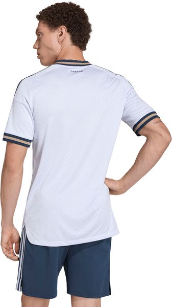 Die schmale Passform des Jerseys unterstützt deine natürlichen Bewegungen optimal und bietet kompromisslosen Komfort, egal ob beim Training oder im Stadion. Gefertigt aus 100 % recyceltem Polyester, spiegelt das Jacquard-Material nicht nur Nachhaltigkeit wider, sondern verleiht dem Trikot auch eine hochwertige Haptik. Das adidas Thermodruck-Branding und das Vereinswappen sind mit Stolz auf dem Trikot platziert und unterstreichen die Verbindung von Tradition und modernem Sportdesign.