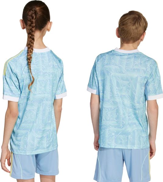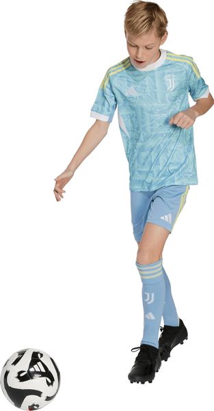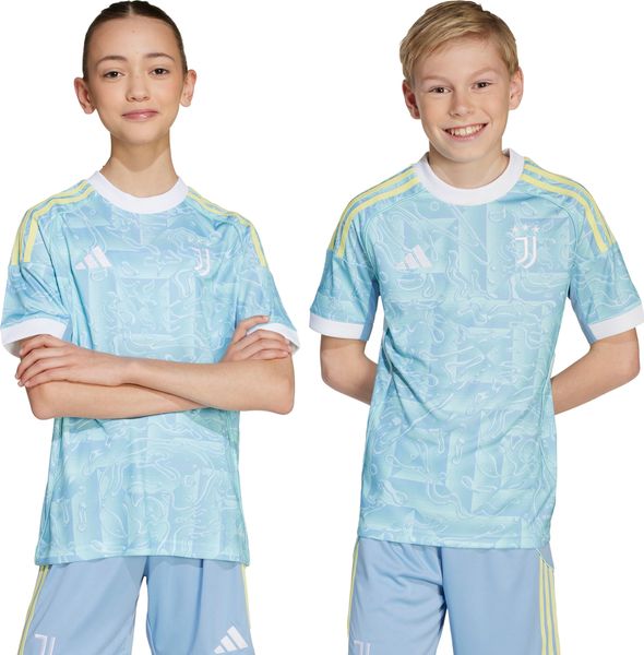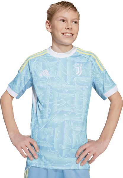 Mit dem Juventus 25/26 Auswärtstrikot für Kinder von adidas bringst du die unbeschwerte Sommerstimmung mit in die neue Fußballsaison. Dieses Trikot ist in ansprechenden blauen Pastellfarben gehalten und wird durch gelbe und weiße Farbtupfer, inspiriert von der Turiner Stadtflagge, ergänzt. Es ist nicht nur ein optisches Highlight an Spieltagen, sondern bietet auch höchsten Tragekomfort durch die reguläre Passform und den klassischen Rundhalsausschnitt.