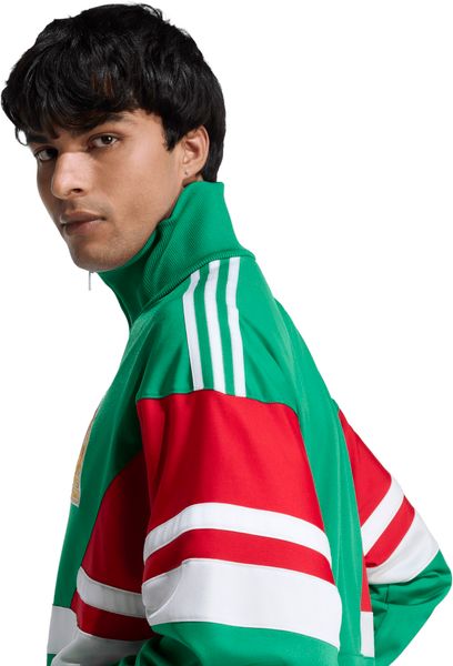 Tauche ein in die lebendige Fußballgeschichte mit dem Mexico Track Top 1986 von adidas. Diese stylische Trainingsjacke ist eine Hommage an die legendäre Fußballweltmeisterschaft von 1986 in Mexiko und vereint ikonische Designelemente mit einem modernen Touch. Hergestellt aus 100 % recyceltem Polyester, bietet die Jacke nicht nur Komfort, sondern auch einen Beitrag zur Nachhaltigkeit. Der reguläre Schnitt, der durchgehende Reißverschluss und der hohe Kragen sorgen für eine bequeme Passform, die perfekt für Freizeitaktivitäten und das Fußballspielen geeignet ist.