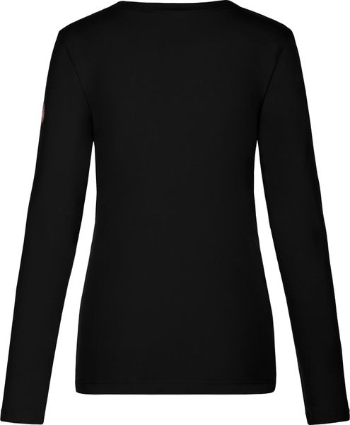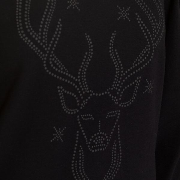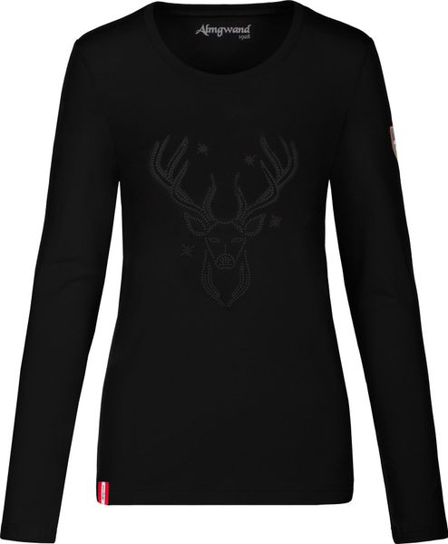Elegantes Shirt mit Strass-Hirsch, tailliertem Schnitt und weichem Materialmix, ideal für Alltag und Skifahren.
