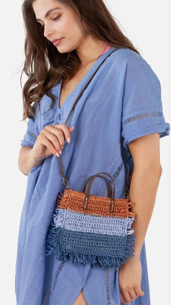 Handgefertigte, gefütterte Papierhandtasche mit Fransen und abnehmbarem Schultergurt für vielseitigen Stil.