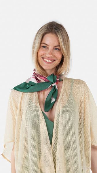 Vielseitiger Damen-Schal aus 100% Modal, Maße 60x60 cm, für elegantes Styling und verschiedene Tragemöglichkeiten.