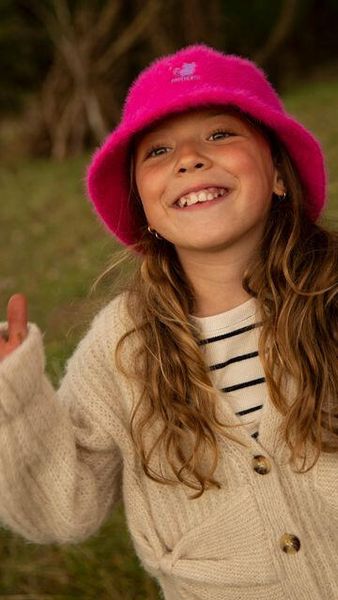 - Weicher modischer Kinder-Fischerhut Haariger Look Verstellbares System Krempenlänge: 6 cm