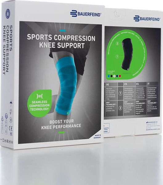 Besonders hervorzuheben sind die Komfortzonen an der Patella und in der Kniekehle, die durch reduzierte Kompression gezielt entlasten und so für ein angenehmes Tragegefühl auch bei langen Belastungen sorgen. Dank der nahtlosen Verarbeitung liegt die Bandage passgenau an und bietet maximale Bewegungsfreiheit, während hautfreundliche Haftzonen ein Verrutschen verhindern.