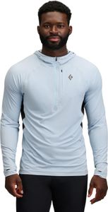 • Der Black Diamond Alpenglow Pro Hoody bietet ultimativen Sonnenschutz sowie Wasserfestigkeit für Ausflüge in die Berge mit unvorhersehbarem Wetter. Neben dem UPF 40+-Gewebe haben wir auch die revolutionäre Empel™ Technologie von GTT hinzugefügt, eine umweltfreundliche, PFC-freie, wasserabweisende Oberflächenbehandlung, die in ihrer Performance allen anderen C-6, C-8 oder C-0 DWR-Lösungen überlegen ist. Der Alpenglow Pro ist außerdem mit einem ¼-Reißverschluss zur Regulierung der Körpertemperatur, HeiQ Pure-Netzeinsätzen unter den Armen für zusätzliche Atmungsaktivität, einer verdeckten Brusttasche, Daumenschlaufen und einer Kapuze zum Tragen unter dem Helm ausgestattet, was diesen Kapuzenpullover zu einer unverzichtbaren Bekleidungsschicht von der Wüste bis zu den Alpen macht.