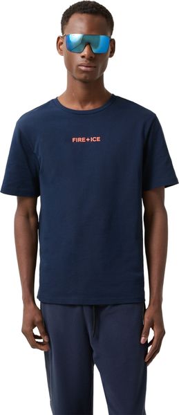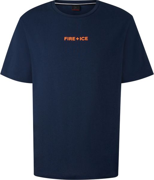 Hergestellt aus dichtem Single-Jersey aus reiner Baumwolle, bietet das T-Shirt nicht nur ein angenehmes Tragegefühl, sondern auch eine hohe Strapazierfähigkeit. Die kurzen Ärmel sorgen für Bewegungsfreiheit und machen das Shirt zu einem idealen Begleiter an warmen Tagen. Ein weiteres stilvolles Detail ist die FIRE+ICE Flag, die seitlich im Rückteil angebracht ist und dem Design eine subtile, aber exklusive Note hinzufügt.