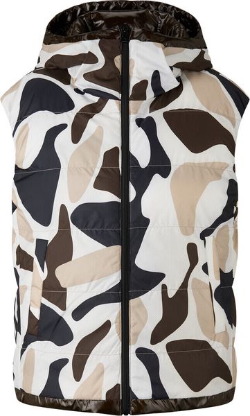 Entdecken Sie stilvolle Vielseitigkeit mit dieser wendbaren Weste, die sowohl eine einfarbige als auch eine AOP-Seite bietet. Die Weste besticht durch einen geraden Schnitt und ist mit einer praktischen Kapuze ausgestattet, die durch einen Tunnelzug mit elastischer Kordel und FIRE+ICE Patch ergänzt wird. Der Zwei-Wege-Zipper mit B-Logo-Anhänger ermöglicht ein einfaches An- und Ausziehen und verleiht dem Design eine exklusive Note.