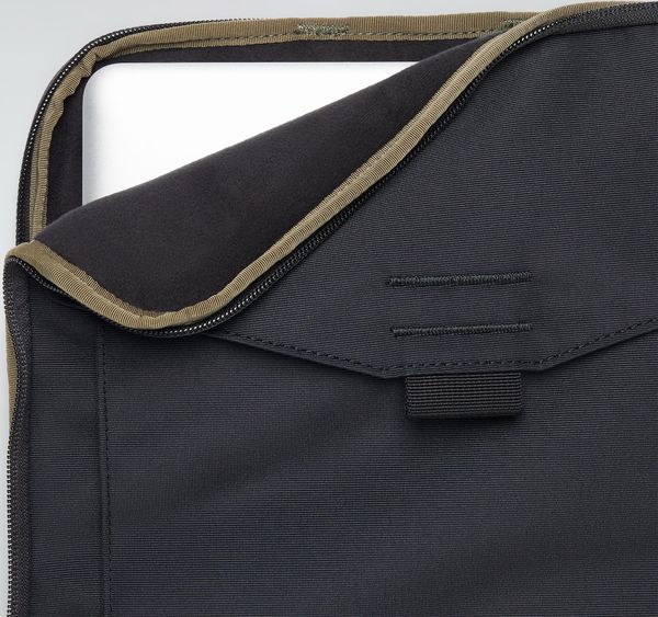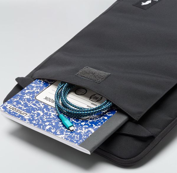 Schützende Laptop-Hülle aus recyceltem Material mit praktischem Zubehörfach und einfachem Zugriff durch L-Reißverschluss.