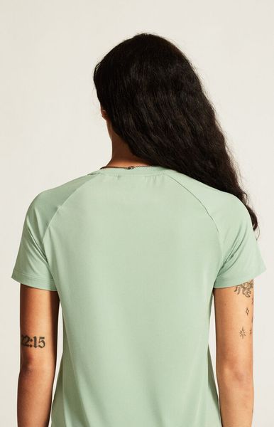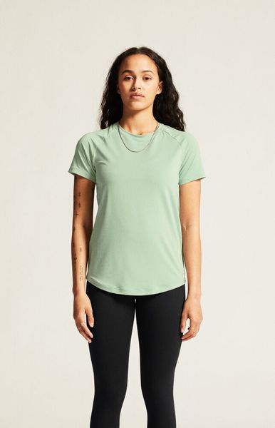 Weiches, elastisches Damen-T-Shirt aus recyceltem Material mit Raglanärmeln und abgerundetem Saum für Komfort und Stil.