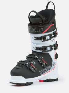 Der Veloce 90 MV von Dalbello ist der ideale Skischuh für Herren, die Dynamik und Präzision auf der Piste suchen. Mit seinem innovativen Design ermöglicht er dynamische Schwünge und hohe Kurvengeschwindigkeiten, während er gleichzeitig eine direkte Kraftübertragung und viel Skikontrolle bietet. Die doppelt eingespritzte Schale des Schuhs ist oben weicher gestaltet, um den Einstieg zu erleichtern, und unten härter, um eine präzise Skikontrolle zu gewährleisten.
