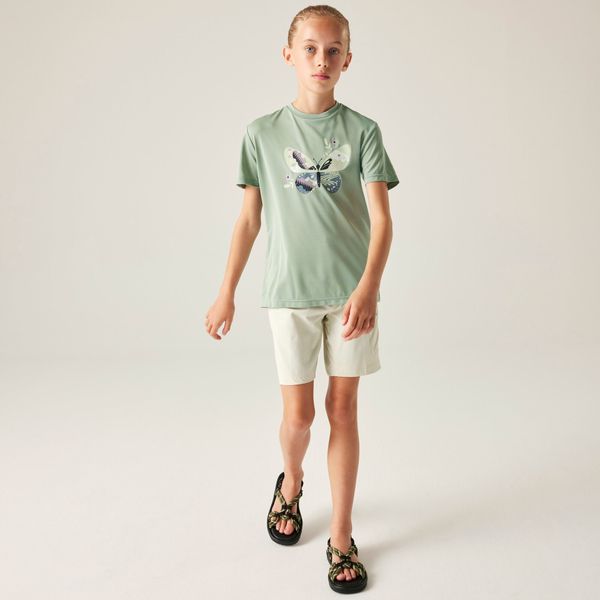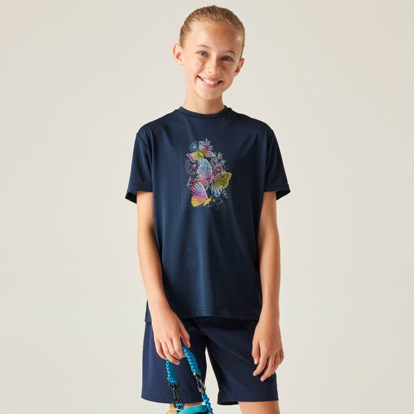 Leichtes Kinder-Wander-T-Shirt mit schnelltrocknendem Gewebe und stylischem Grafikdruck für aktive Outdoor-Abenteuer.