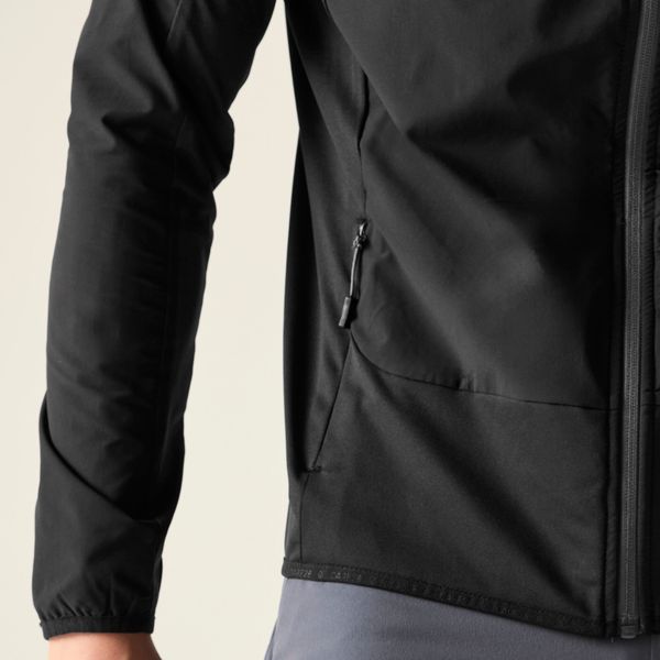 Ein besonderes Merkmal der Jacke ist die verstellbare Kapuze mit Gummizug, die zusätzlichen Schutz bei widrigen Wetterbedingungen bietet. Praktische Reißverschlusstaschen bieten Stauraum für wichtige Utensilien, und die elastischen Bündchen sowie der elastische Saum sorgen für einen perfekten Sitz. Mit einem UV-Schutz von LSF 50+ und einem robusten, abriebfesten Material ist die Jacke bestens für Outdoor-Abenteuer gerüstet. Trotz ihrer vielfältigen Funktionen bleibt sie mit einem Gesamtgewicht von nur 350 g (in Größe M) leicht und angenehm zu tragen.