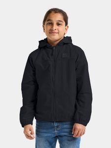 Leichte, wasserabweisende Kinderjacke mit abnehmbarer Kapuze und reflektierendem Logo für optimale Sichtbarkeit und Schutz.