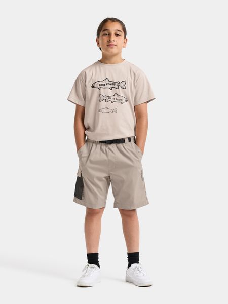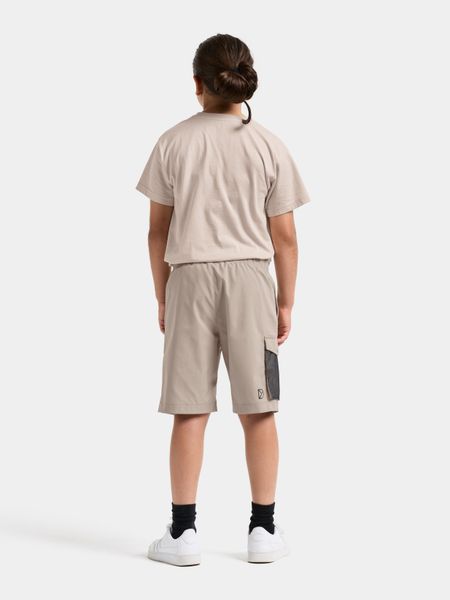 Komfortable, winddichte Kindershorts aus biobasiertem Stoff mit reflektierenden Details und praktischen Taschen.