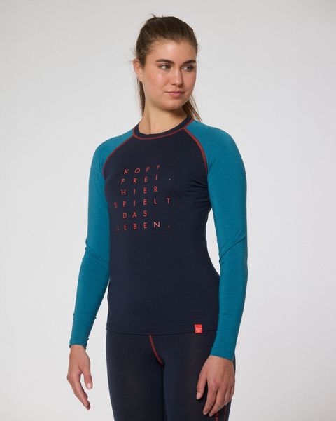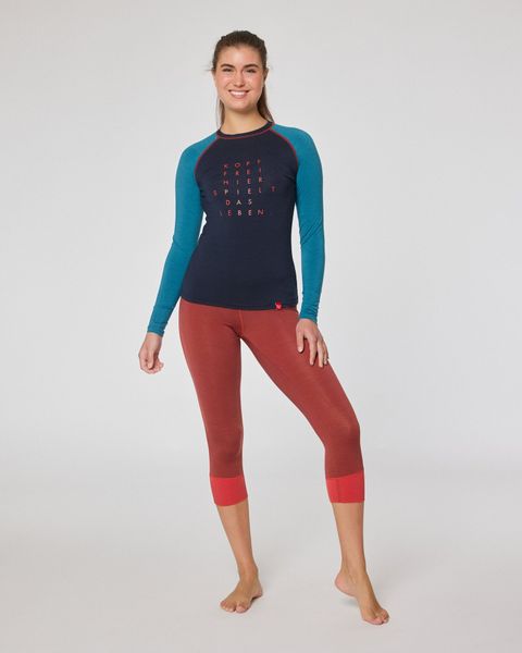 Weiches, funktionales Langarmshirt aus Merinowolle für uneingeschränkte Bewegungsfreiheit bei Outdoor-Aktivitäten.