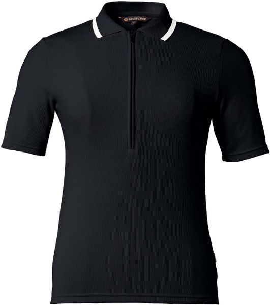 Das Cassia Polo Top von Goldbergh vereint stilvolles Design mit funktionalen Eigenschaften und ist ein Must-Have für jede modebewusste Frau. Der Ripp-Polokragen ist je nach Farbvariante mit einem kontrastierenden Lurex-Streifen versehen, was dem Polo einen eleganten Touch verleiht. Ein verdeckter ½-Reißverschluss vorne und seitliche Belüftungsöffnungen sorgen nicht nur für eine raffinierte Optik, sondern auch für optimalen Tragekomfort.