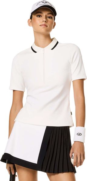 - Style Details Ripp-Polo mit Lurex-Kontrastkragen 2x2 strukturierte Rippe Ripp-Polo-Kragen mit goldenem Lurex-Kantenstreifen für Farbvariante #8160 Ripp-Polo-Kragen mit #8000 weißem Kontrast für Farbvariante #9000 Ripp-Polo-Kragen mit #9000 schwarzem Kontrast für Farbvariante #8000 Ripp-Polo-Kragen mit #4340 lachsrosa Kontrast für Farbvariante #4741 Verdeckter ½-Reißverschluss Seitenschlitze Metall-Markenetikett am Ärmel Gewebtes Markenetikett an der Seite Materialien: 2x2 strukturierte Rippen, feuchtigkeitsregulierend, schnell trocknend und geruchshemmend, 80 % Polyamid, 20 % Elasthan