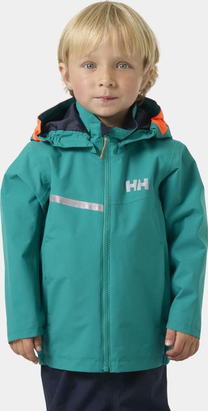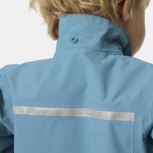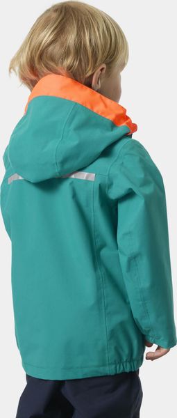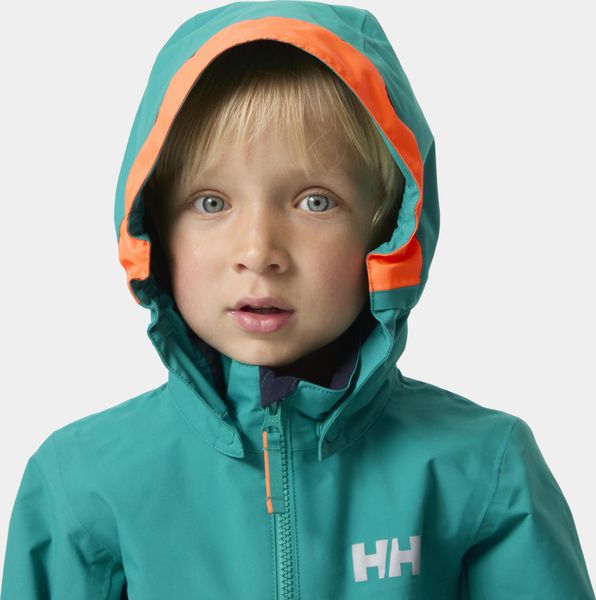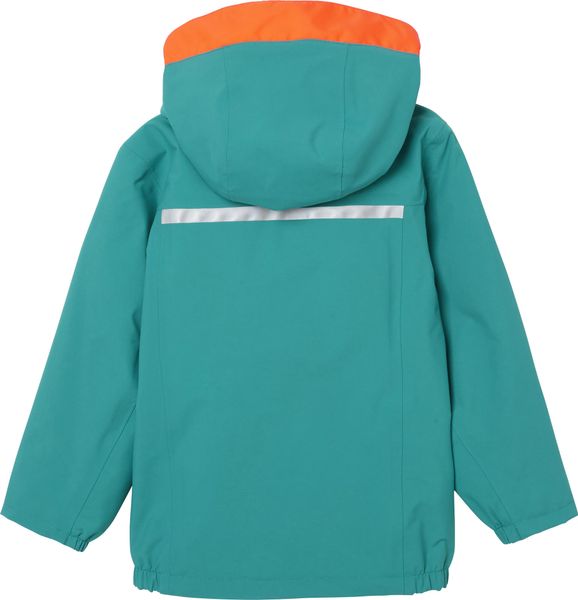 Wasserdichte Kinderjacke mit abnehmbarer Kapuze und reflektierenden Details für maximale Sicherheit und Komfort.