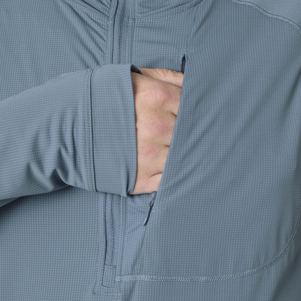 Gefertigt aus einem innovativen Materialmix aus 80 % recyceltem Polyamid und 20 % Elasthan, kombiniert der Hoodie Nachhaltigkeit mit Flexibilität. Die Wolle sorgt für eine angenehme Wärme, während der UV-Schutzfaktor UPF 50 Ihre Haut effektiv vor schädlichen Sonnenstrahlen schützt. Die eng anliegende Kapuze, der praktische Half-Zip-Reißverschluss und die Daumenlöcher bieten zusätzlichen Komfort und Schutz vor Wind und Wetter.