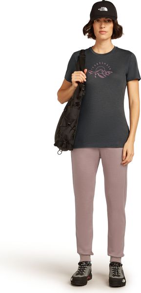 Vielseitiges Damen-T-Shirt aus Merinowolle, ideal für Skifahren, mit geruchsneutralisierenden Eigenschaften und stilvoller Grafik.