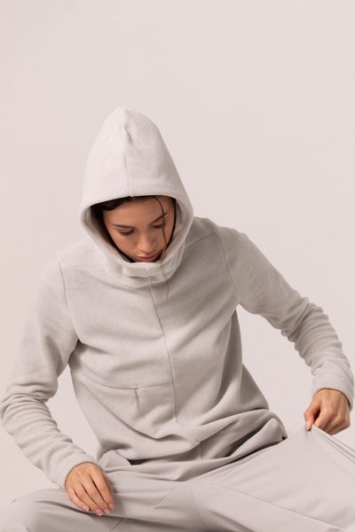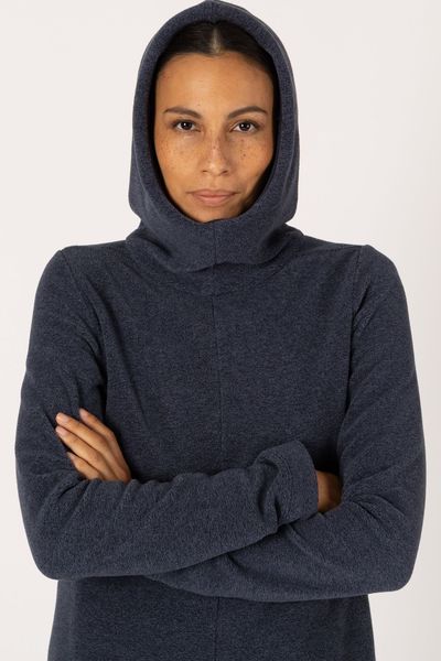 Warmer Melange-Fleece Kapuzenpulli mit verstellbarer Kapuze und Daumenlöchern für maximalen Komfort und Stil.
