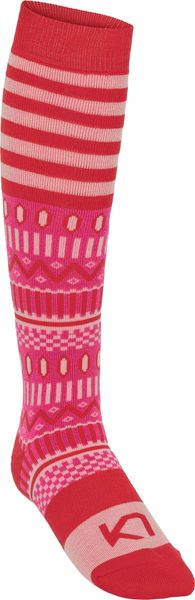 Dank der Terry-Innenseite bietet die Socke eine ausgezeichnete Isolierung und ein angenehmes Tragegefühl. Die flache Zehennaht minimiert Reibung und verhindert Blasenbildung, während das verstärkte Fersen- und Zehenbereich die Langlebigkeit der Socke garantiert. Ein integrierter Fußgewölbe-Support sorgt für zusätzlichen Halt und Stabilität, was besonders bei langen Skitagen von Vorteil ist. Der Jacquard-Strick verleiht der Socke nicht nur Struktur, sondern auch ein stilvolles Design, ergänzt durch das charakteristische Kari Traa-Logo.
