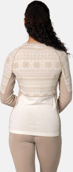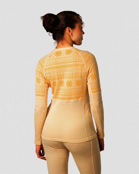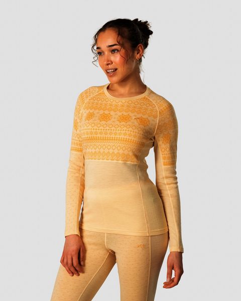 Das luxuriöse Gefühl auf der Haut entsteht durch die Verwendung von ultraweichen 19,5 Mikron Merinowollfasern, die das Longsleeve zu einem echten Premium-Produkt machen. Das Jacquard-Strickmuster, das an sanften Schneefall erinnert, rundet das Design ab und macht das Vilma Longsleeve zu einem unverzichtbaren Bestandteil jeder Wintergarderobe.