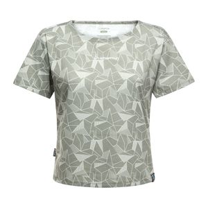 Bequemes und schnell trocknendes Damen-T-Shirt für Kletter- und Boulderaktivitäten aus recyceltem Polyester und Baumwolle.
