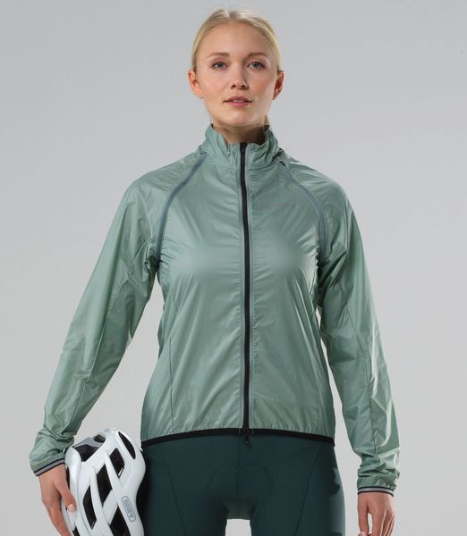 Winddichte, wasserabweisende Fahrradjacke mit abnehmbaren Ärmeln, minimalem Packmaß und reflektierenden Details.