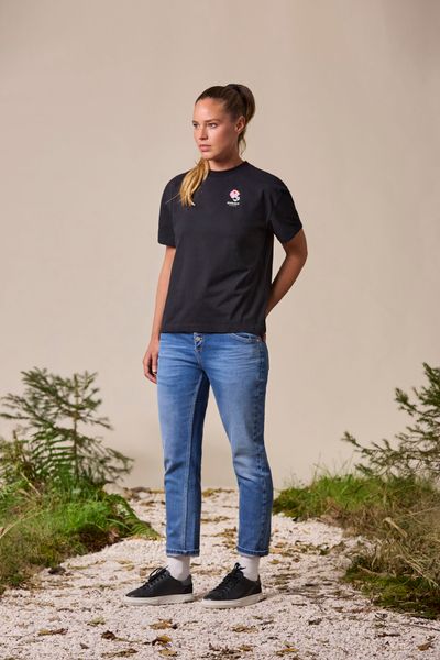 Das SVELLINGM. T-Shirt von Maloja ist ein gerade geschnittenes Basic-Shirt für Damen, das sich perfekt für den Alltag und urbanes Arbeiten eignet. Hergestellt aus hochwertiger Bio-Baumwolle, bietet es nicht nur ein angenehmes Tragegefühl, sondern auch Nachhaltigkeit. Der breite Rippkragen verleiht dem Shirt eine zeitlose Eleganz, während der dezente Blumenprint auf der Brust eine besondere Note hinzufügt. Dieser Print zeigt die Bachblume, die aus der Vogelperspektive den Standort von Maloja in Bach symbolisiert und speziell für die aktuelle Kollektion LA VIA entworfen wurde. Das SVELLINGM. T-Shirt ist die perfekte Wahl für Frauen, die Wert auf Stil und Umweltbewusstsein legen.