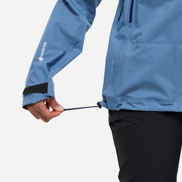 Die Jacke verfügt über eine helmkompatible Kapuze mit Kordelzugverstellung, die optimalen Schutz und eine Rundumsicht bietet. Die vorgeformten Ellbogen und Raglanärmel sorgen für maximale Bewegungsfreiheit, während die verstellbaren Bünde und der elastische Kordelzug am Saum eine individuelle Anpassung ermöglichen. Praktische Details wie die wasserdichten Reißverschlüsse an den Eingrifftaschen und der Frontöffnung sowie die Belüftungsschlitze unter den Armen machen die Kamet GTX Jacket W zu einem unverzichtbaren Begleiter in alpinen Umgebungen.