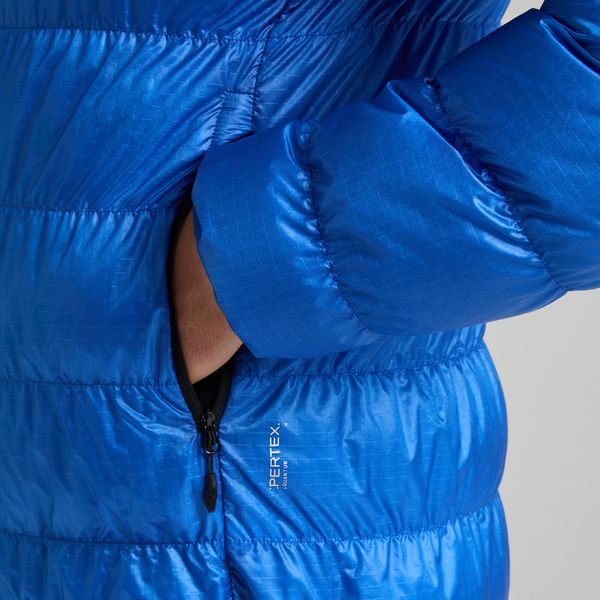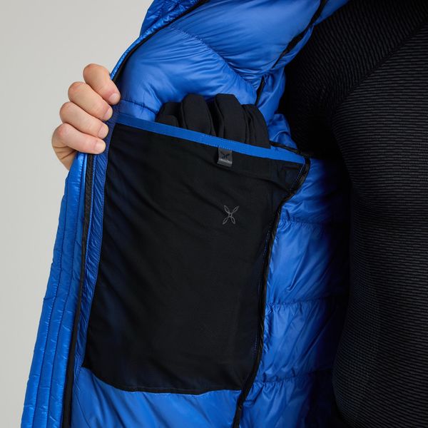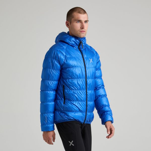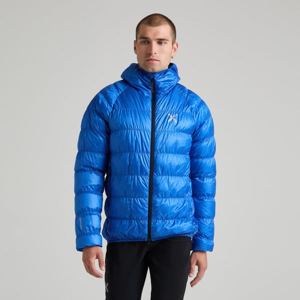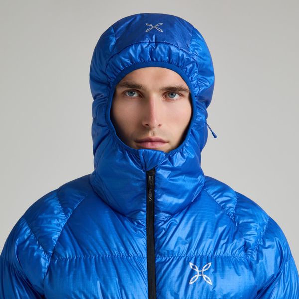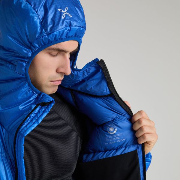 Mit einer Wattierung aus 90% weißen Entendaunen und 10% Entenfedern bietet die Jacke eine beeindruckende Füllkraft von 750 CUIN, was für hervorragende Isolierung und Komfort sorgt. Das recycelte Nylongewebe unterstreicht den umweltfreundlichen Ansatz, während die verstellbare Kapuze und der elastische Saum für eine perfekte Passform sorgen. Praktische Details wie der Zwei-Wege-Reißverschluss, die Reißverschlusstaschen und die Daumenöffnungen an den Bündchen machen die Jacke zum idealen Begleiter für Outdoor-Aktivitäten wie Klettern und Bergsteigen.