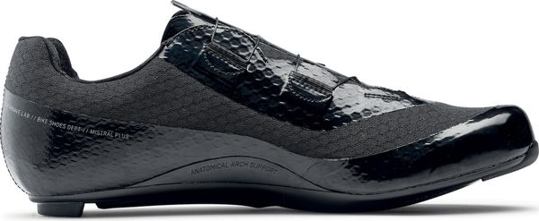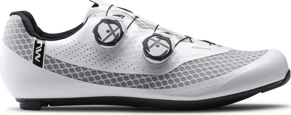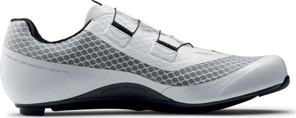 – Ausgezeichnete Thermoregulierung des Fußes dank der Verwendung eines 3DMesh mit sechseckigen Zellen. – Netzstruktur, die Beständigkeit und Leichtigkeit gewährleistet – Die leichte, belüftete Oberstruktur vereint Komfort und mechanische Beständigkeit – Sohle mit CarbonZeheneinsatz mit einem Festigkeitsindex von 12 – Perforierte Sohle, um die Luftzirkulation von der Zehe bis zur Ferse zu gewährleisten – Der Verschluss mit doppeltem SLW3Rotor (derselbe wie beim Spitzenmodell) ermöglicht eine mikrometrische Regulierung mit schrittweiser Abgabe