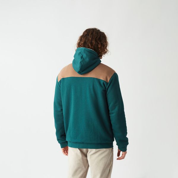 Der Hoodie ist mit einer praktischen Kapuze ausgestattet, die sich mithilfe eines Kordelzugs individuell anpassen lässt. Funktionalität steht im Vordergrund: Die Fronttasche mit Reißverschluss unter der Klappe, die rückseitigen Taschen mit Druckknöpfen und die Handtaschen mit umgekehrten Reißverschlüssen unter der Klappe bieten ausreichend Stauraum für all Ihre Essentials. Der YKK® Reißverschluss an der Vorderseite sorgt für einfaches An- und Ausziehen und ist ein weiteres Zeichen für die hochwertige Verarbeitung dieses Kleidungsstücks.