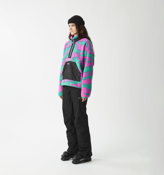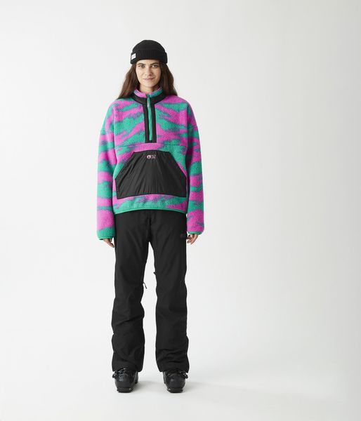 Vielseitiges Fleece für Damen, ideal zum Skifahren, aus recyceltem Material mit praktischen Taschen und elastischen Einsätzen.