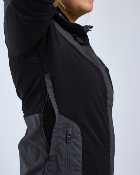 Besonders beeindruckend ist die Flexibilität der Jacke, die durch 4-Wege-Stretchkomponenten gewährleistet wird. Diese sorgen zusammen mit dem High-Ventilation™ Mesh-Futter und den seitlichen Belüftungsöffnungen für hervorragende Atmungsaktivität mit einer Rate von 30.000 g/m²/24h. Die verschweißten Nähte und der wasserabweisende Reißverschluss bieten zusätzlichen Schutz vor den Elementen. Praktische Details wie die wasserabweisende Brusttasche mit Reißverschluss und der verstellbare Saum sowie Klettverschlüsse an den Ärmelbündchen runden das funktionale Design ab.