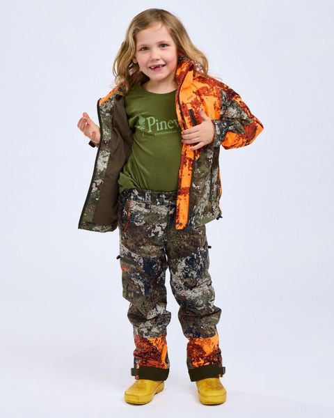 Wind- und wasserdichte Camou-Hose für Kinder, perfekt für Abenteuer in der Natur mit hohem Tragekomfort und Funktionalität.