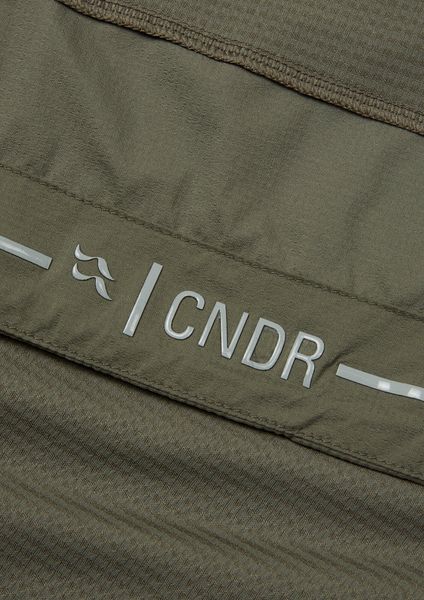- Körpernah positionierte Materialien unterstützen die Wärme- und Schweißregulierung, das atmungsaktive Gewebe hingegen sorgt für Windbeständigkeit.