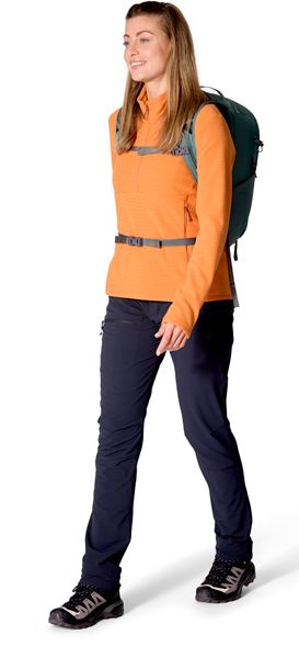 - Der Hüftgurt kann durch Vorziehen justiert und bei Nichtgebrauch einfach abgenommen werden.