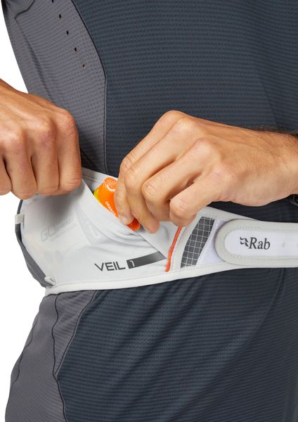 Dank des sicheren Gurtbands mit Klettverschluss und den lasergeschnittenen Belüftungsöffnungen bleibt die Tasche stabil und komfortabel, egal wie viele Kilometer du zurücklegst. Die Veil 1 bietet mit einer Reißverschlusstasche im Lendenbereich und mehreren Netz-Stautaschen ausreichend Platz für Snacks, Gele oder einen Kompass. Zudem kannst du mit den vier kleinen Gurtschlaufen zusätzliche Aufbewahrungsoptionen hinzufügen.