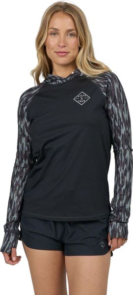 Mit einem UPF 50+ Sonnenschutz ausgestattet, schützt die langärmelige Kapuzenjacke effektiv vor schädlichen UV-Strahlen. Die integrierten Ärmelbündchen und Daumenlöcher sorgen für einen sicheren Sitz und zusätzlichen Komfort. Das perforierte Material sorgt zudem für eine hohe Atmungsaktivität, während die feuchtigkeitsableitenden Eigenschaften dafür sorgen, dass Sie auch an heißen Tagen trocken bleiben. Der stilvolle Siebdruck auf Brust und Rücken rundet das Design gekonnt ab und verleiht der Sunshirt einen modernen Look.