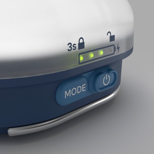 Mit zwei Lichtmodi und vier Helligkeitsstufen bietet die Glow Blue die Flexibilität, die du benötigst. Der äußerst stromsparende 5 Lumen Modus überzeugt mit einer beeindruckenden Leuchtdauer von bis zu 101 Stunden. Dank des Doppelhaken-Designs lässt sich die Laterne einfach neigen oder im Zelt aufhängen, während die rutschfesten Details für Stabilität auf unebenen Flächen sorgen.
