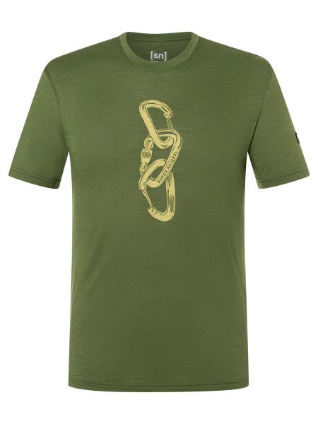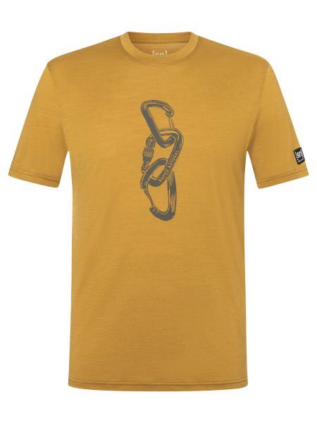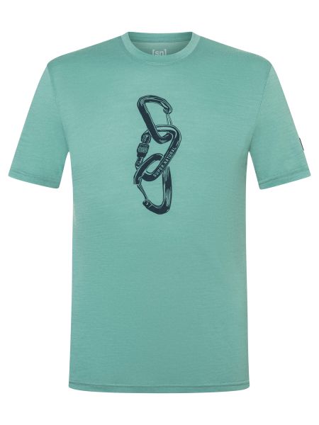Das kurzärmelige Merino Shirt beeindruckt nicht nur durch seine Funktionalität, sondern auch durch sein Design. Der auffällige Kletter-Print mit drei verhakten Karabinern auf der Brust ist ein echter Hingucker und spiegelt die Leidenschaft für den Bergsport wider. Mit seinem Regular Fit Schnitt garantiert das T-Shirt uneingeschränkte Bewegungsfreiheit und einen lässigen Look, der sich perfekt in den Alltag integrieren lässt.